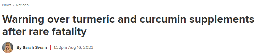 就在近日,澳洲医药监管机构对含有姜黄(turmeric)和姜黄素(curcumin)的药品和草药补充剂发出警告: