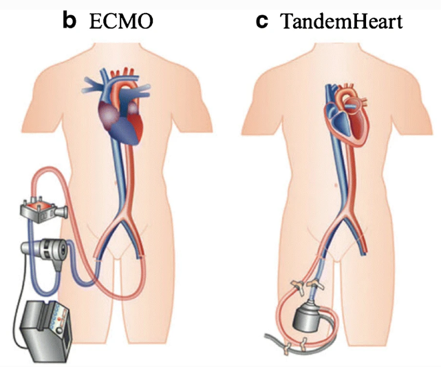 12 月 14 日,由于左心房流入套管与左心房紧邻,心房壁穿孔风险大,TandemHeart 又被替换为静脉-动脉体外膜肺氧合(VA-ECMO)系统。