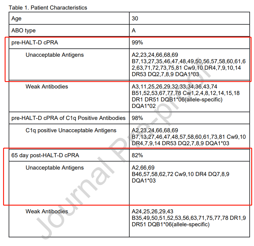 手术本身十分顺利,重点在于术后的排异反应,团队逐日监测抗体,直到移植后 65 天,患者对供体器官的抗体才完全消失,cPRA 降为 82%。