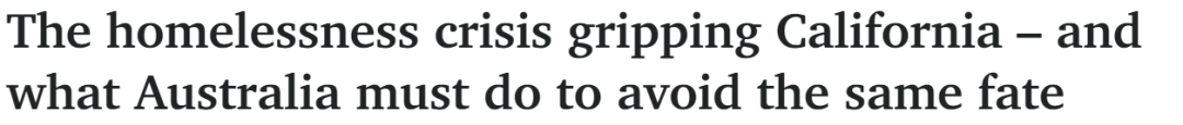 最后,澳洲住房危机一旦持续下去所造成的严重后果,加州的现状就是前车之鉴,不这仅仅关乎民生,也关系到社会治安。