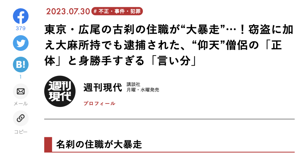 今天我们新闻的主角就是一位日本百年古寺的住持,因为他的这一身份,让这条新闻显得更加荒诞,让人震惊。