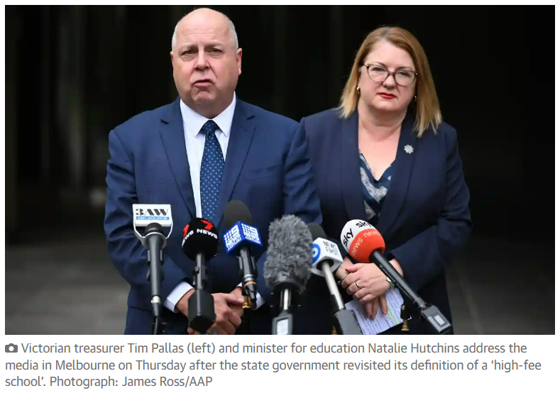 维州财长Tim Pallas和维州教育部长Natalie Hutchins公布了将于明年7月1日开始生效的60所缴纳工资税的学校名单。
