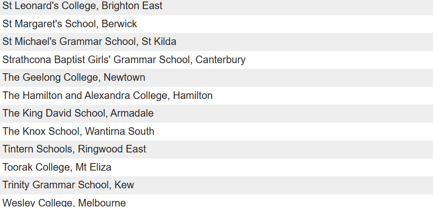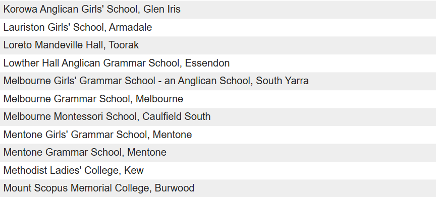 其他目前对12年级学生收取超过38,000澳元的昂贵私校包括Lauriston、St Catherine’s、Scotch College和Melbourne Girls Grammar。