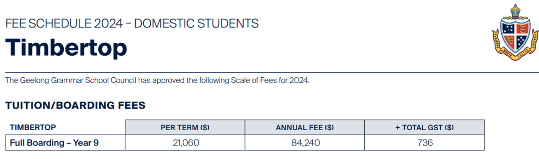 在Timbertop校区,9年级全日制寄宿学生明年学费为84,240澳元。