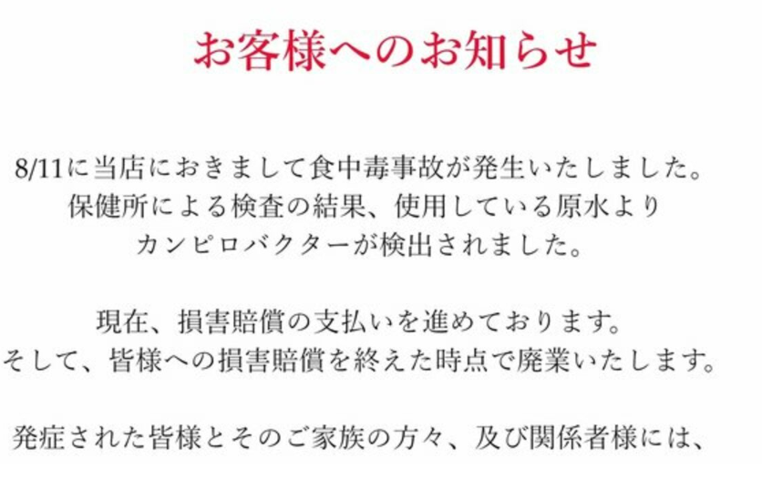9月9日,山梨县甲府市一家餐馆发生了小弯杆菌中毒事件。