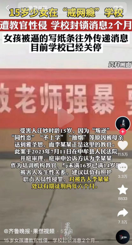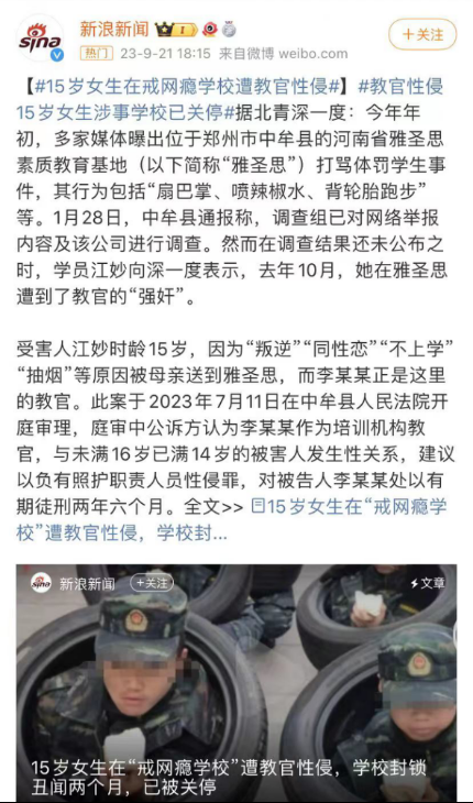收藏15岁女生在“戒网学校”遭教官性侵:她的悲剧,到底是谁造成的?