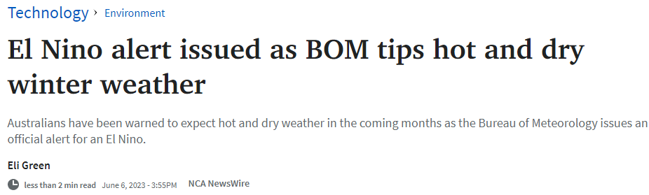 毕竟过去3年时间里,都是拉尼娜现象困扰着澳洲,现在好不容易拉尼娜现象可能要暂时告一段落,没想到来了个更让人无奈的厄尔尼诺!