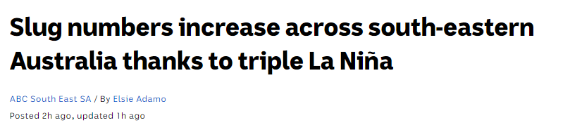 所以,看似只是鼻涕虫泛滥,对农作物有了不少危害,实际上它的泛滥代表着澳洲接连不断遭遇极端天气。