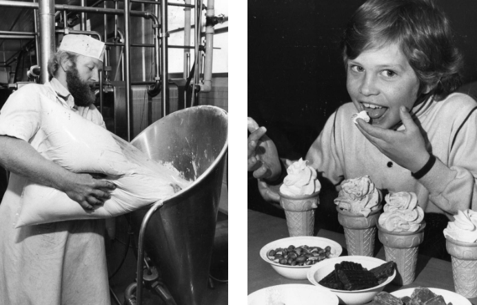 1984 年 8 月:Morphett Vale的 9 岁Cameron Best正在品尝Freesia 的一系列新的“混合搭配”冰淇淋口味。