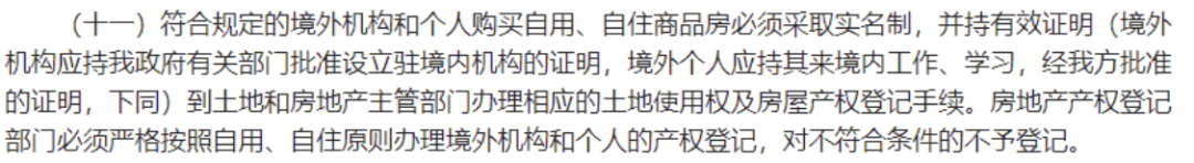 意在严格规范在中国的境外机构和外籍人士的购房行为。