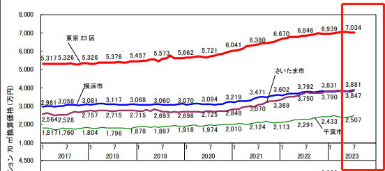截至今年7月,东京圈一都三县的新房均价,与2022年同期相比,上涨了近60%达到9940万日元(约合人民币487万元),也就是说,仅一年间,房价增加了约3700万日元(约合人民币181万元)。