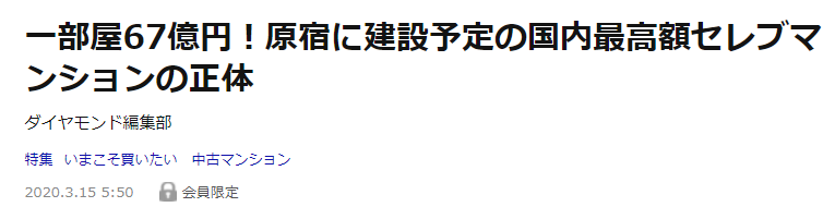 就拿东京最贵公寓的头衔来说,此前这个纪录还是由于2020年推出、一处位于涩谷原宿的低层公寓,以67.7亿日元的最高成交纪录保持着。