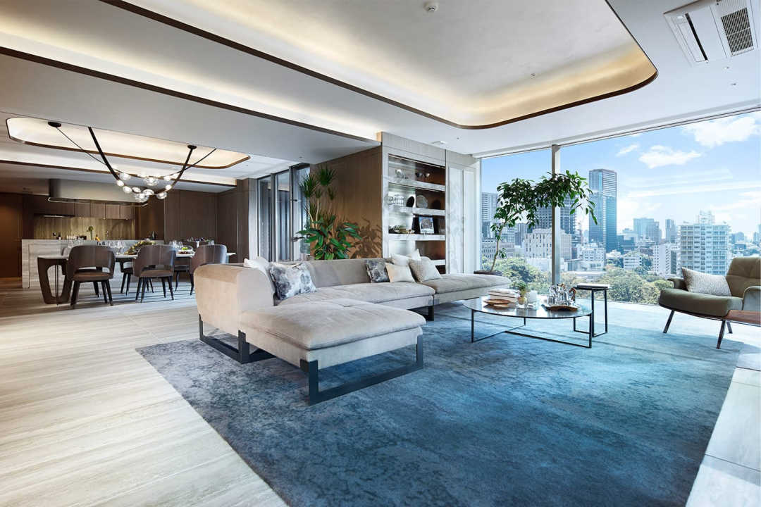 这套豪宅位于刚建成的日本第一高楼:330米高、共64层楼的“麻布台之丘(Azabudai Hills)森JP塔(Mori JP Tower)”的最顶层。