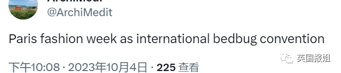 再加上巴黎时装周刚刚结束,臭虫环游世界的论调听起来还挺让人担忧: