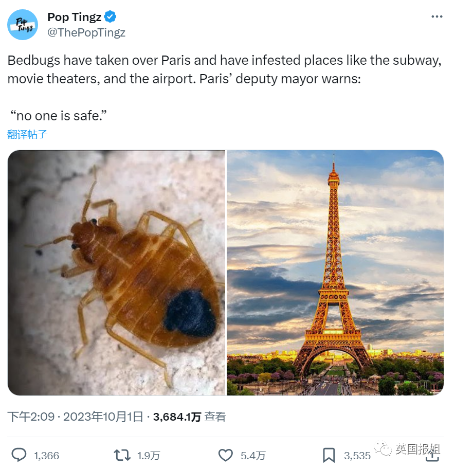 有网友表示,目前臭虫已经占据巴黎的C位,前段时间沸沸扬扬的“要与人类共存”的600万只老鼠,看了这场面也得乖乖让贤。