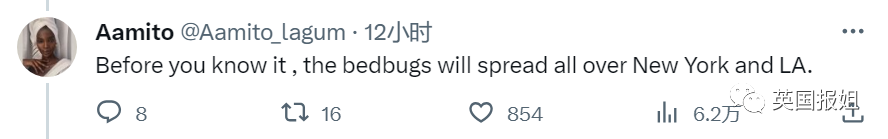 恐慌沿着社交媒体迅速蔓延,很多臭虫相关的帖子都有上万的转发量。