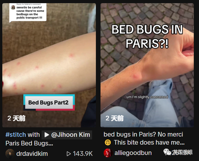公交、地铁、电影院...越来越多的地方开始出现臭虫的身影。随便刷两下社交媒体或是短视频,都能看到巴黎人民的实时分享。