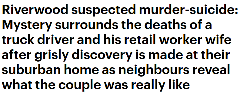 悉尼华人区Riverwood疑似发生一起谋杀-自杀案(murder-suicide)。目前死者身份已确定,两人均为华人。