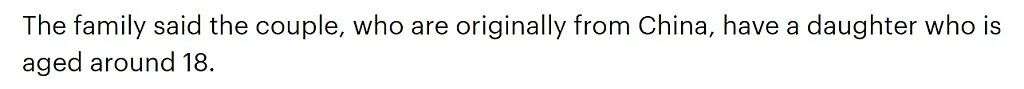 邻居还表示,这对来自中国的夫妇有一个18岁左右的女儿。