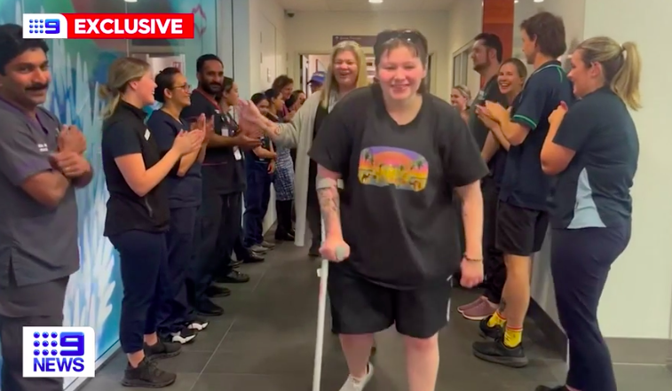 出院后,她仍需使用拐杖才能走路,估计彻底摆脱拐杖还需要一段时间。