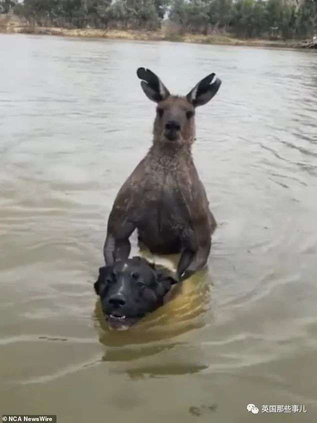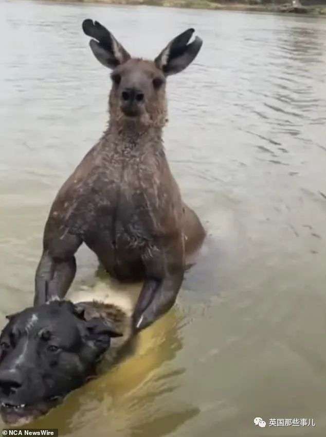 看那个姿势,总感觉那只吓人的半兽人袋鼠想在淹死狗之前对它再做点什么!