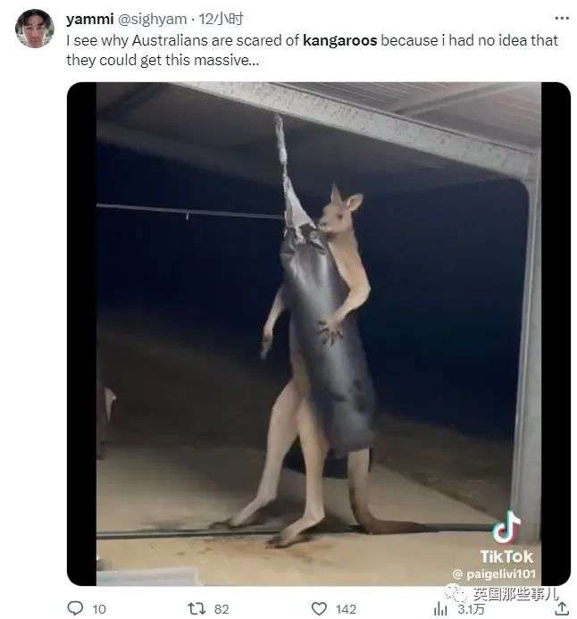 视频发布后,网友们纷纷转载,表达了自己对视频中袋鼠的恐惧。