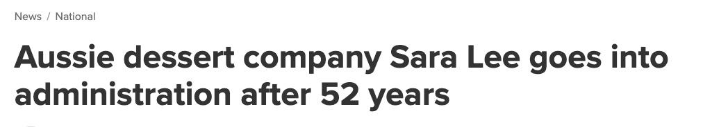 澳大利亚颇受欢迎的甜点公司 Sara Lee 在销售冷冻芝士蛋糕、馅饼、酥饼和冰淇淋 52 年后进入破产管理程序。