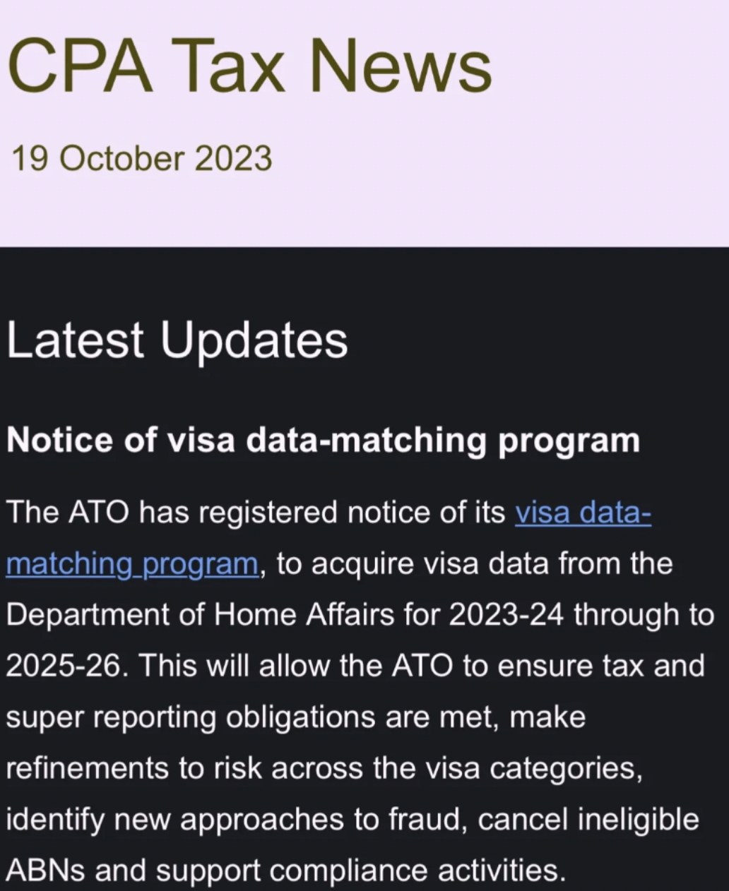 ATO将从内政部获取2023-24年度至2025-26年度的签证数据。
