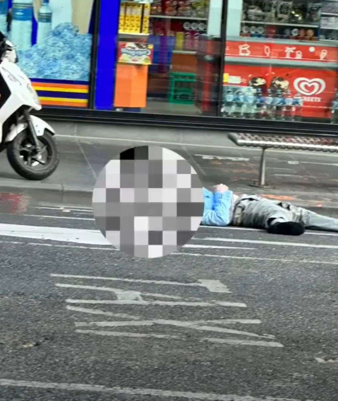 一位目击者表示,自己当时下楼送东西,司机在马路对面等着,他走过去的时候看到两团肉,还差点踩到,回来路上等红绿灯,才发现后面躺着个人。