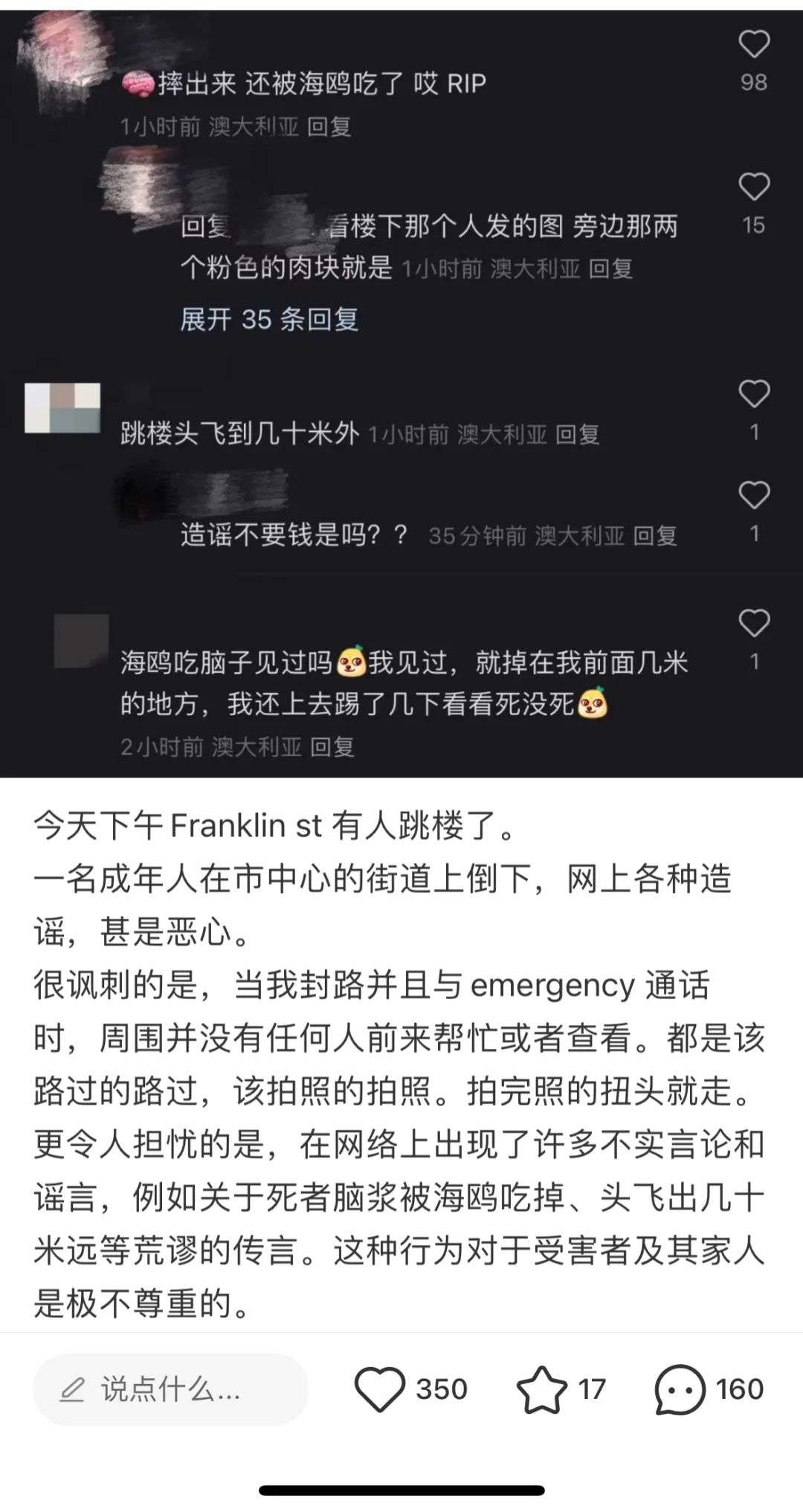收藏突发!疑澳八大中国留学生CT高层跳楼!被分手26楼跃下!料已不治!华人圈炸开了...半年内2次