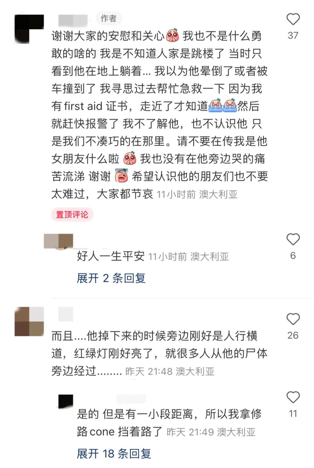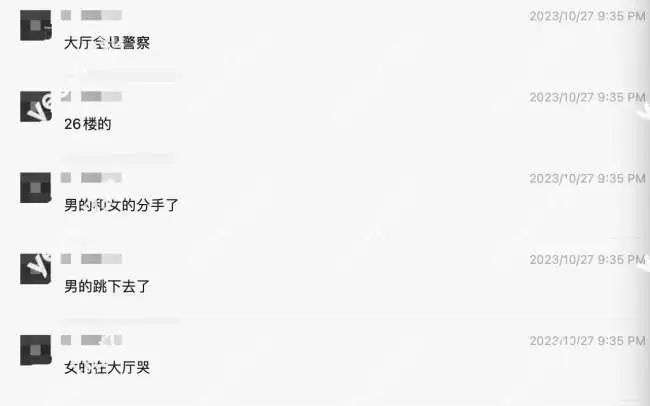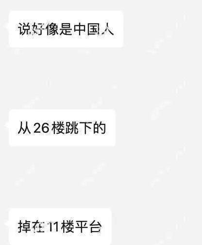 “我朋友说听到他(死者)女朋友在旁边哭,说的是中文,跳楼的很可能是个中国人。”