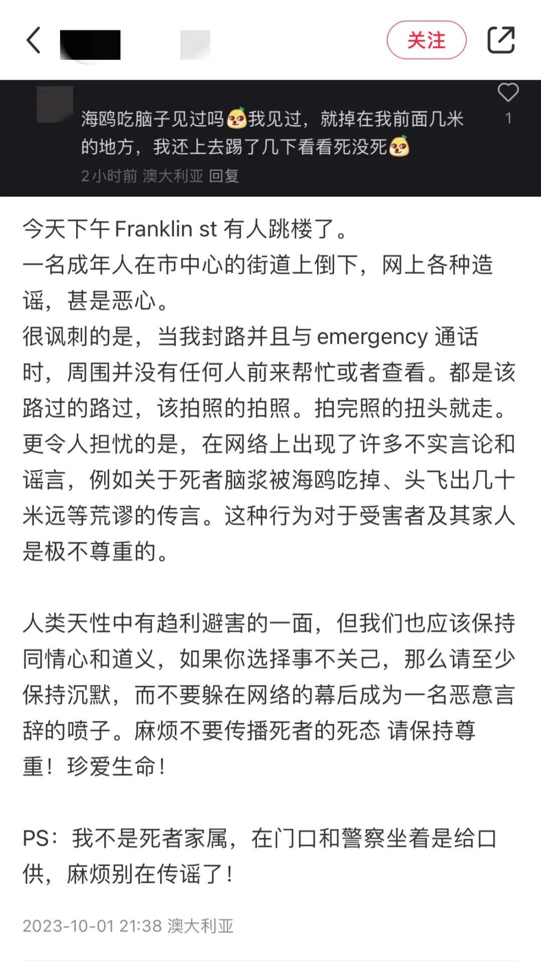 听说b栋有人跳楼了