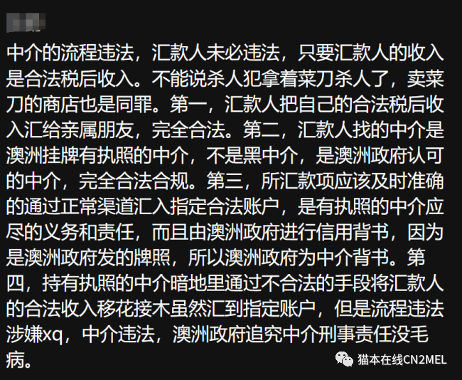 结语:综上所述,大家基本都认准一个道理,中介的流程违法,汇款人未必违法,这其中谁是谁非,期待专业人士解答!