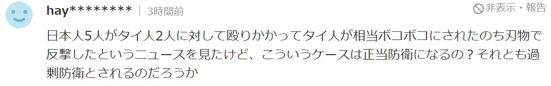 看(视频版)新闻的时候,很明显就是5个日本人狂揍那2个店员,然后那个很惨的泰国人拿刀出来反击······这种情况的话,应该是按照正当防卫、或者过剩防卫来算的吧?