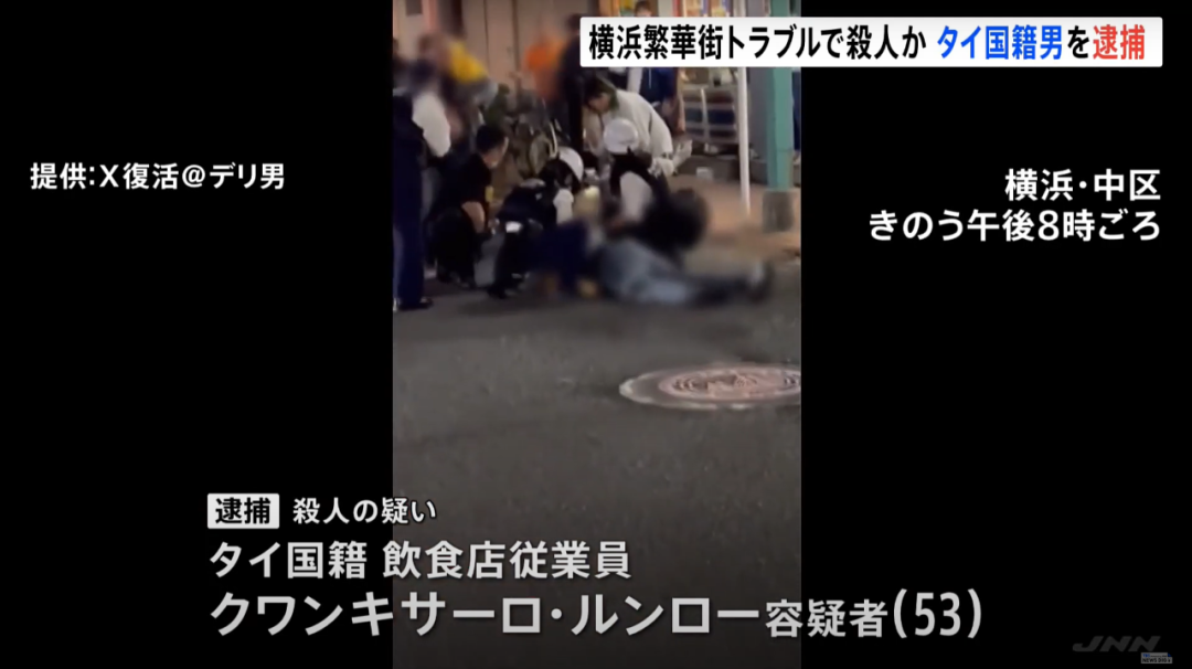 2023年11月2日晚7:40左右,日本横滨市中区的一处繁华地带,发生一起群殴致死事件。据目前消息(尚未完全确认),持刀杀人的犯罪嫌疑人、有较大可能是群殴中2名泰国籍餐厅店员中的1名,而死者和伤者,则属于和店员发生争执的一行5名日本人。