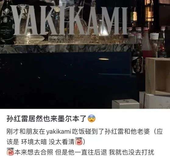 此前,还有网友多次拍到孙红雷夫妇在墨尔本逛街、吃烤鸭、吃日本料理等。