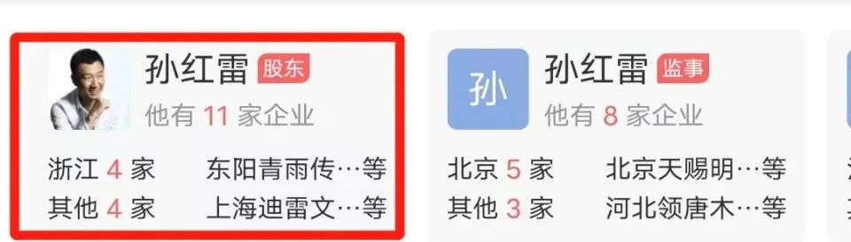 有孙红雷参股的企业有11家,每家规模几百万几千万不等