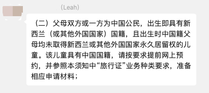 Leah夫妻持中国护照和新西兰永居签证,大女儿与他们相同。