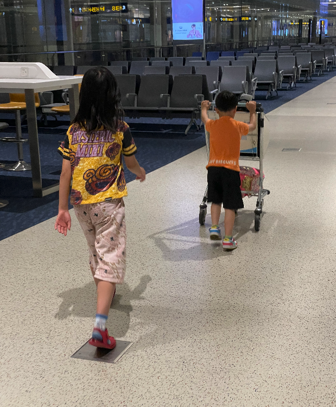 受访者供图 |两个孩子在机场