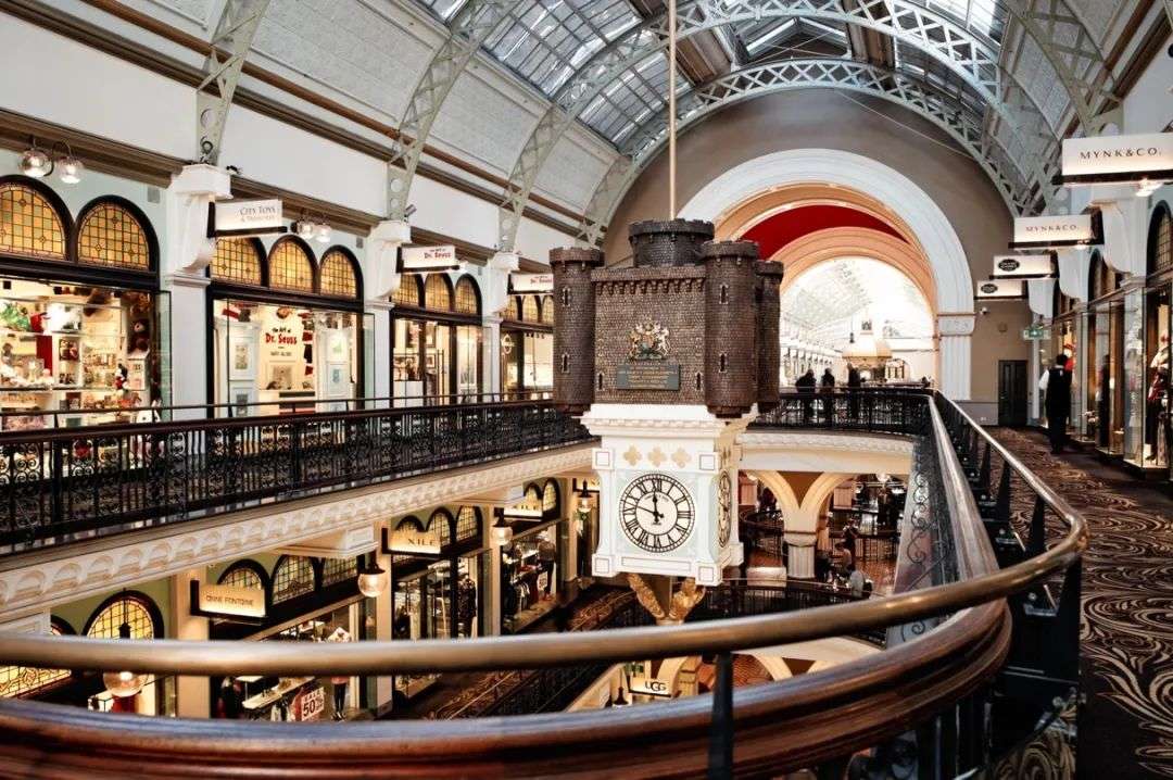 City walk当然少不了购物这一重要环节。位于悉尼中央商业中心乔治街的维多利亚女王大厦(Queen Victoria Building)是悉尼极具标志性和久负盛名的购物目的地,始建于1898年,历史悠久、建筑辉煌,展示出精致华美的罗马式建筑特色。巨大的中央圆顶和华丽的彩色玻璃窗,无疑是这座历史建筑的最大亮点。它拥有140多家时尚精品店、珠宝店、咖啡馆和餐厅等,可以最大程度满足您购物和味蕾的全部需求。
