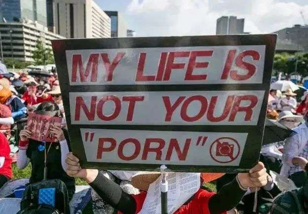2018年,7万多名韩国女性走上首尔街头游行抗议,标语是「我的生活不是你的色情片」