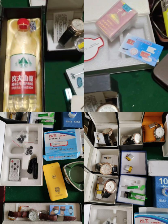 这些设备种类繁多,包括插座、充电器、挂钟、打火机、充电宝、烟雾报警器、纸巾盒、烟灰缸、垃圾桶……应有尽有。