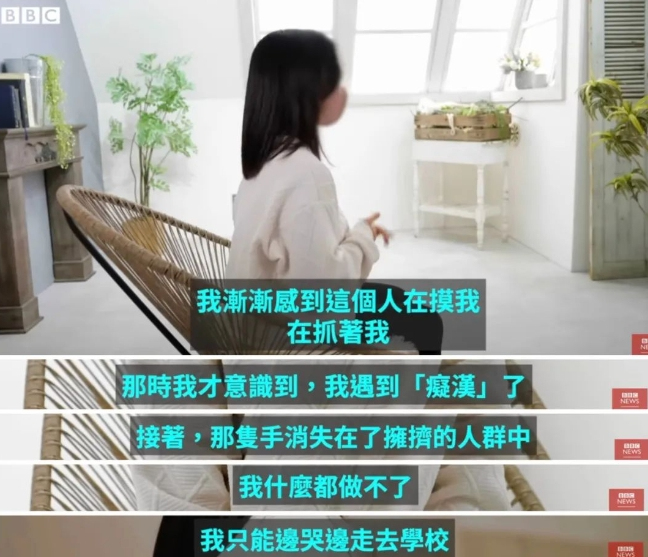 BBC纪录片中的受害者“孝子”提到,当她感觉受到侵害时,对方已经消失不见,自己只能哭着默默回学校。