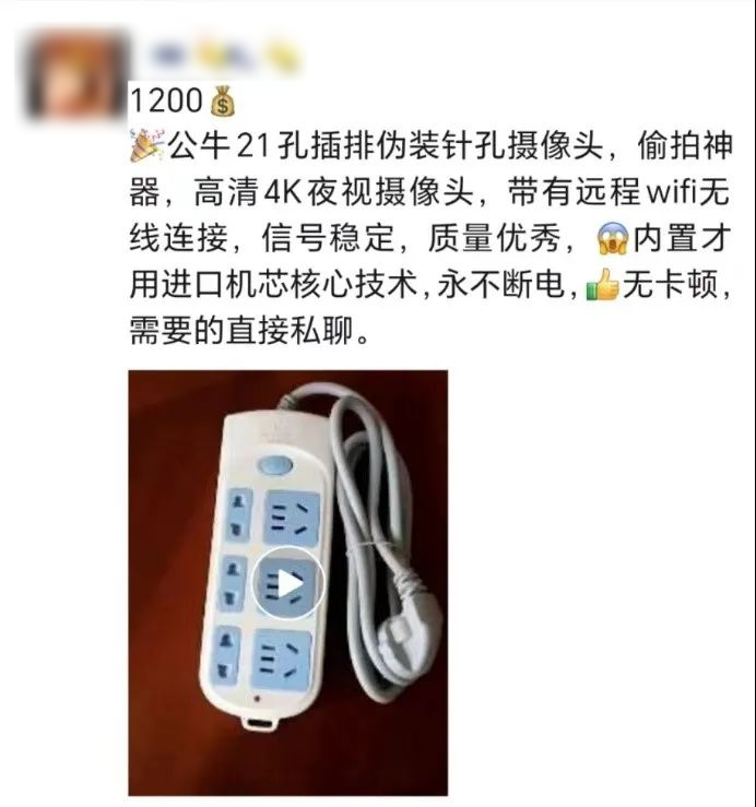 有人在朋友圈兜售伪装成插座的“偷拍神器”