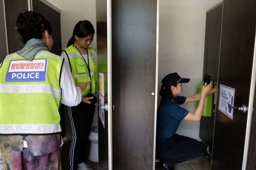 韩国警方在女厕容易偷拍的地方进行调查取证