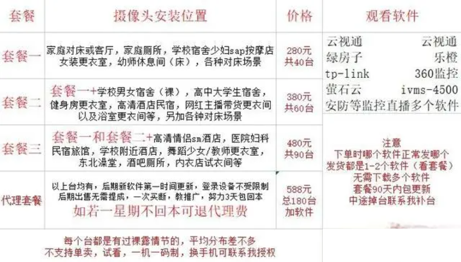 在某偷拍平台中,这种将酒店或家庭监控ID打包的实时监控最受欢迎,而且会根据内容和环境(比如卧室、餐厅)分成不同套餐进行兜售,价格从几十元到上千元不等。
