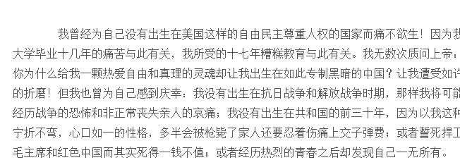 我曾经为自己没有出生在美国这样的自由民主尊重人权的国家而痛不欲生!因为我大学毕业十几年的痛苦与此有关,我所受的十七年糟糕教育与此有关。