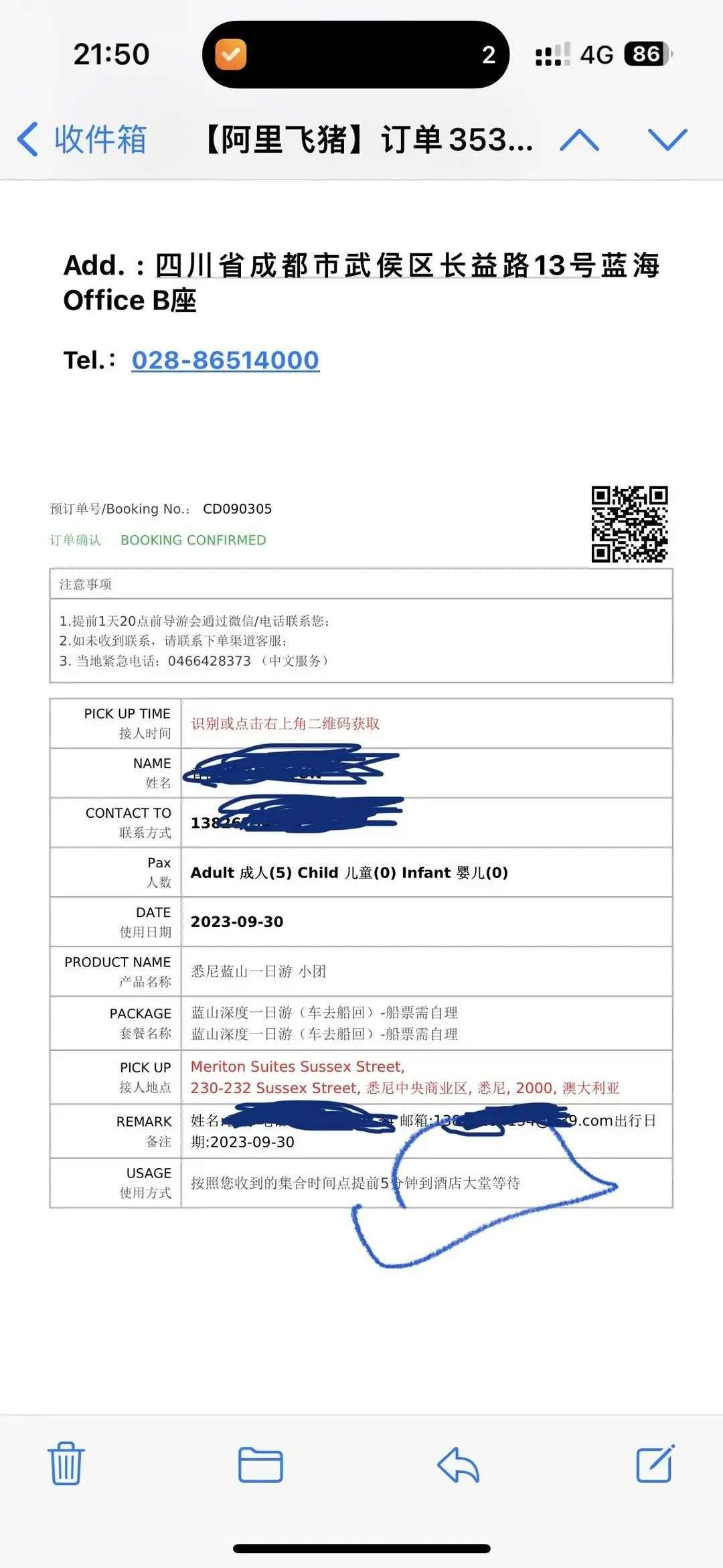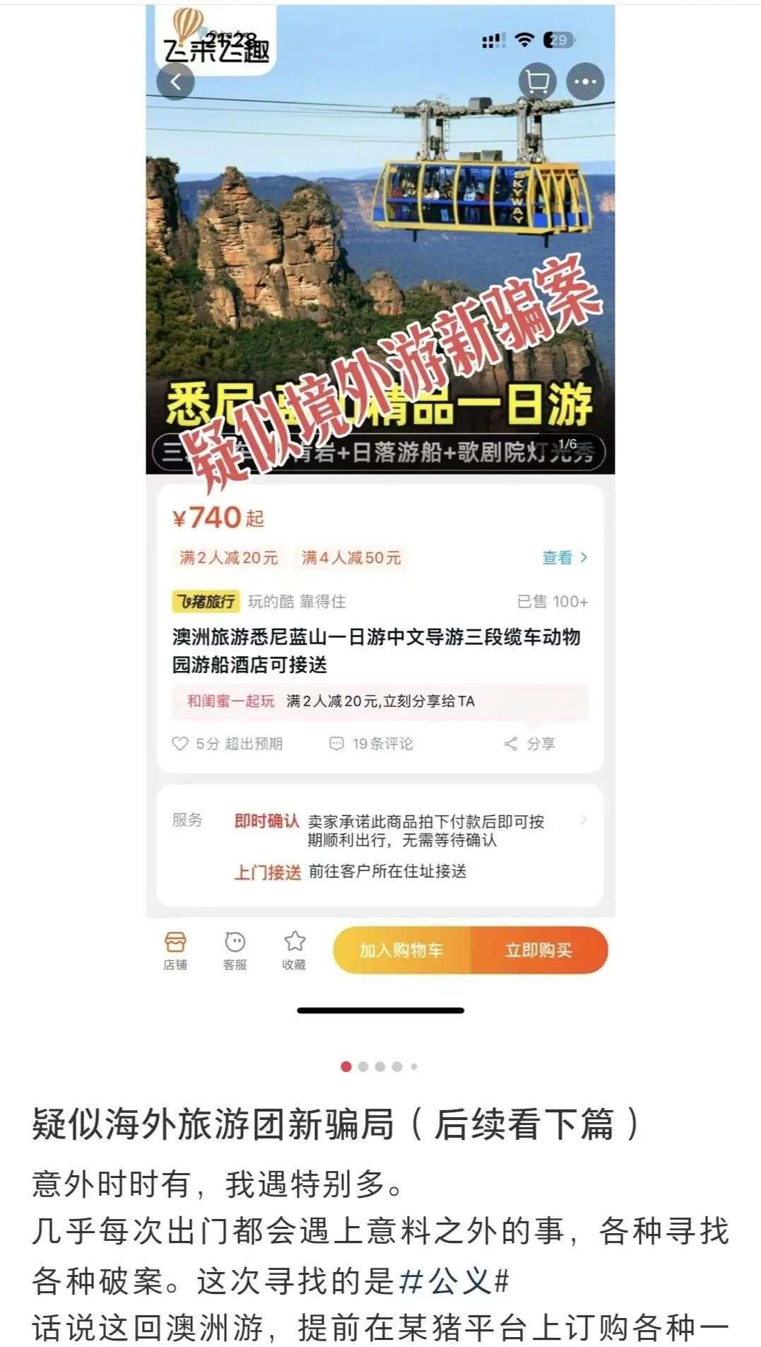 11月13日,封面新闻记者获悉,今年9月,来自广东广州的女子小谢和单位同事休假前往澳洲游玩,几人提前在飞猪平台上订购了悉尼蓝山一日游小团(不超过10人),平台随后发来订单确认信息以及导游名字和联系方式。