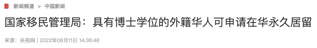 “具有博士学位的外籍华人,只需要提交相关材料就可以申请在华永久居留。”