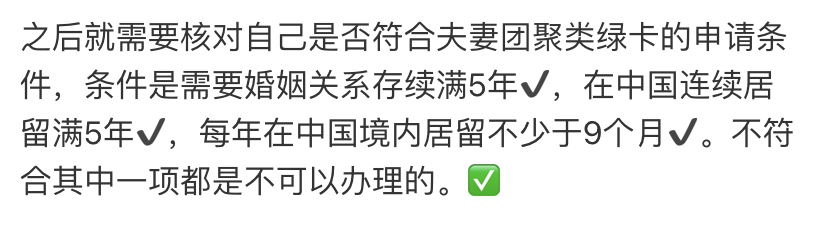 之后就需要核对自己是否符合夫妻团聚类绿卡的申请条件,